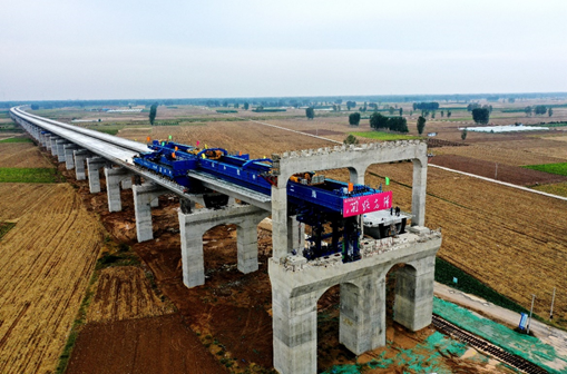 (四)为提高黄河大堤内跨越、防洪能力,开展了40m简支箱梁预制架设工法的技术创新设计研究,实现了高速铁路40m简支箱梁整孔预制架设的规模化应用,形成了高速铁路40m简支梁简支箱梁“预制、运输、架设”快速施工成套技术,达到国内领先水平。