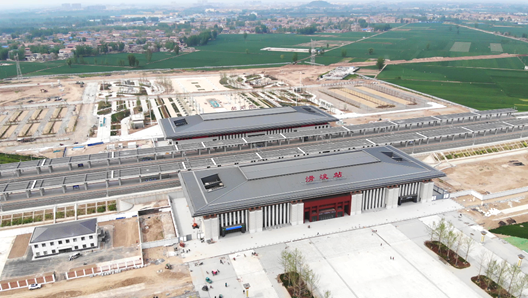 (七)针对滑县、浚县居民出行的需求,对车站站位和布置进行创新研究,提出了滑县、浚县交界处“一座高铁站,横跨两市两县”的研究思路,并首次采用双站房、双广场设计,均衡考虑了两县人员的出行需求,取得了良好的社会经济效应。