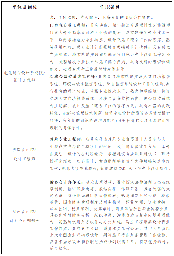 5.招聘公告中未尽事宜以及招聘过程中的特殊情况,由中铁设计人力资源部负责解释。