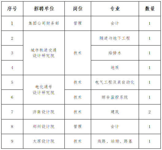 5.招聘公告中未尽事宜以及招聘过程中的特殊情况,由中铁设计人力资源部负责解释。